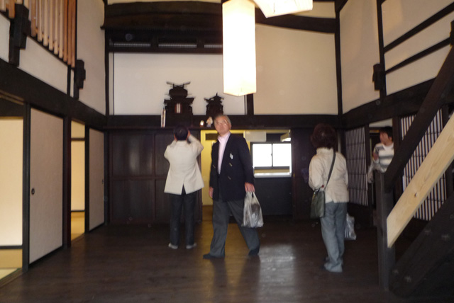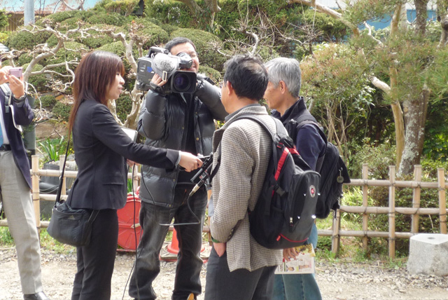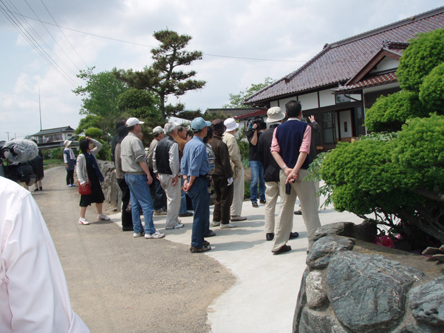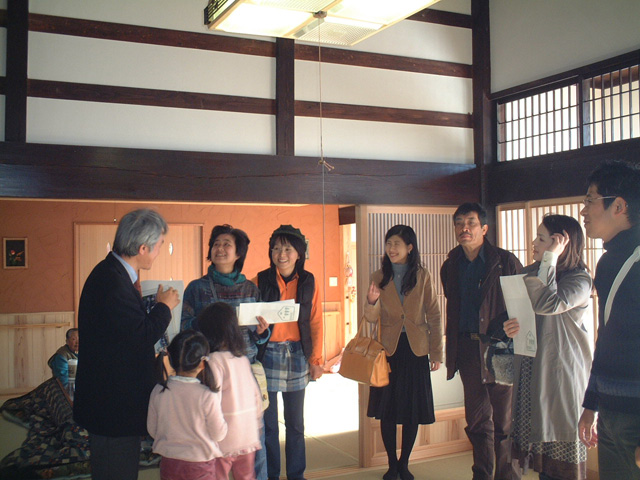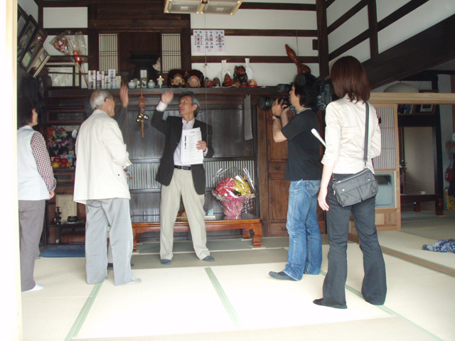 [古民家を見学中、テレビ取材を受けた参加者たち]